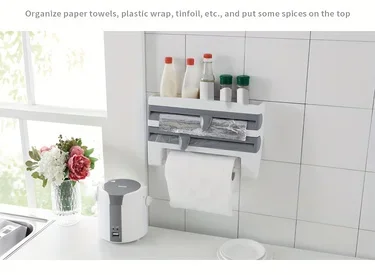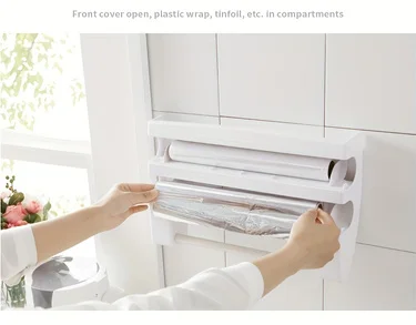 Transform your kitchen into a clean, efficient workspace with one all-in-one organizer for cling film, foil, and paper towels.