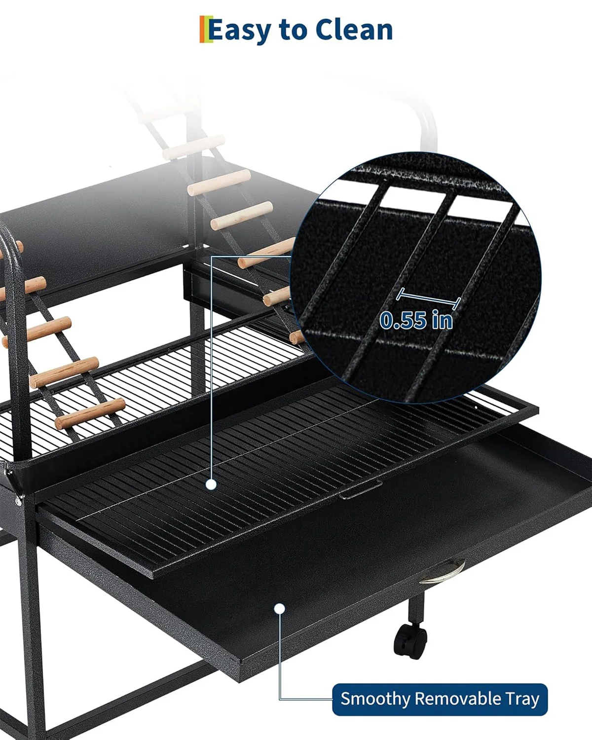 - Extra-tall 66" design provides spacious room for parrots, cockatiels, conures, African greys, and other medium-to-large birds to climb, stretch wings, and explore.