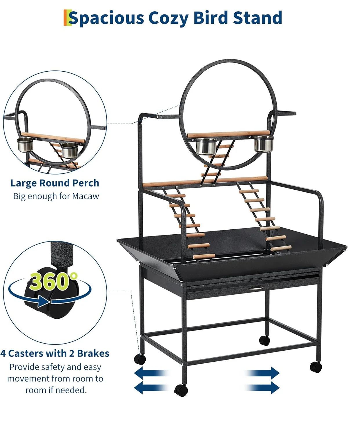 HiMISSCN Heavy Duty Bird Play Stand With Lockable Wheels