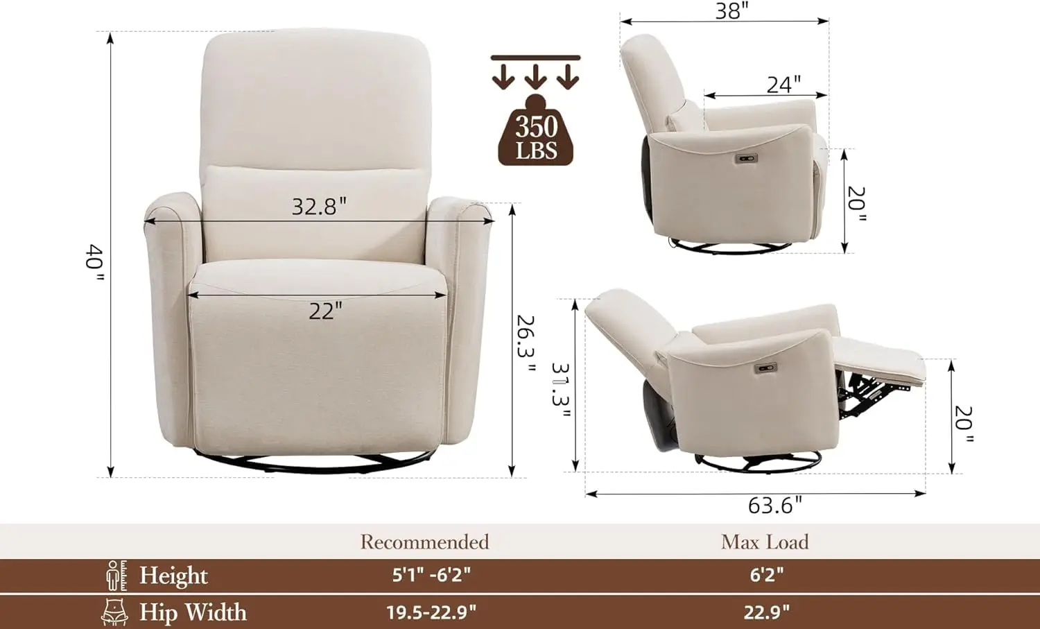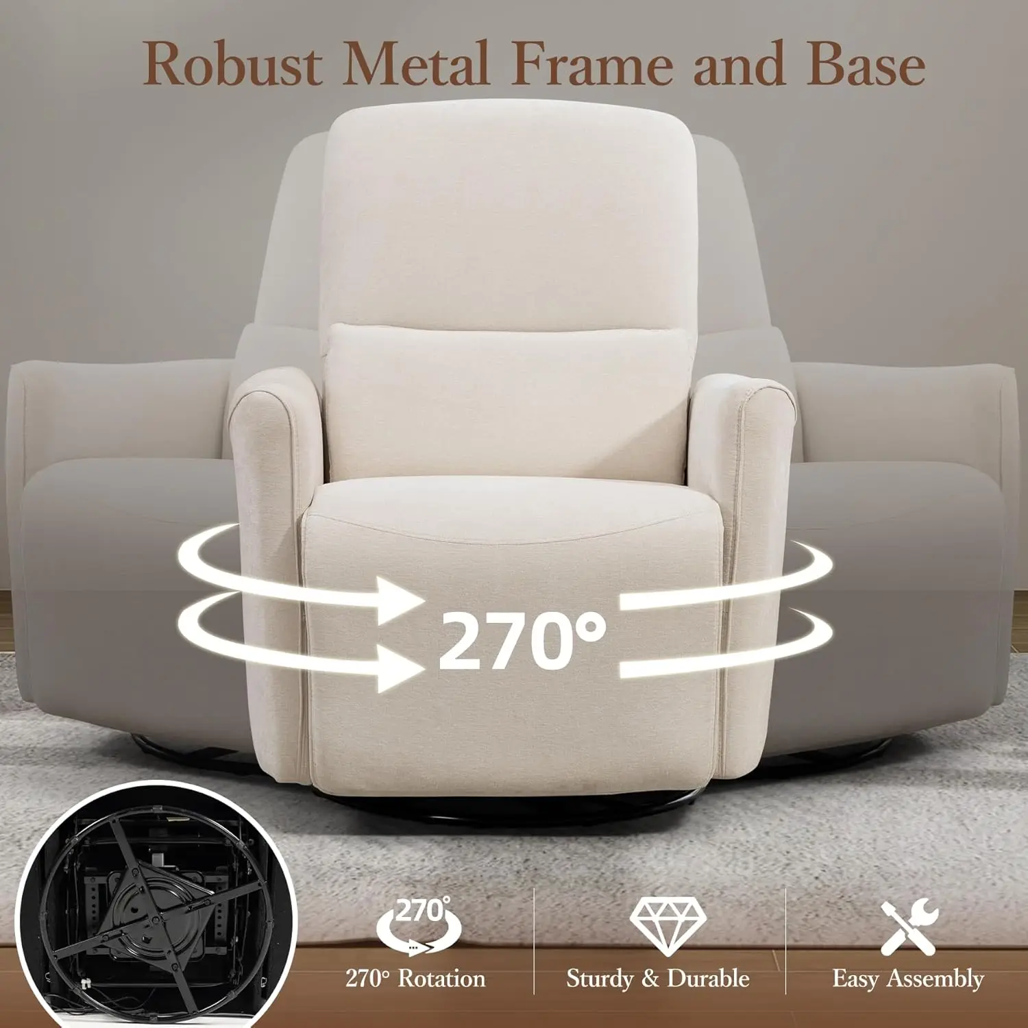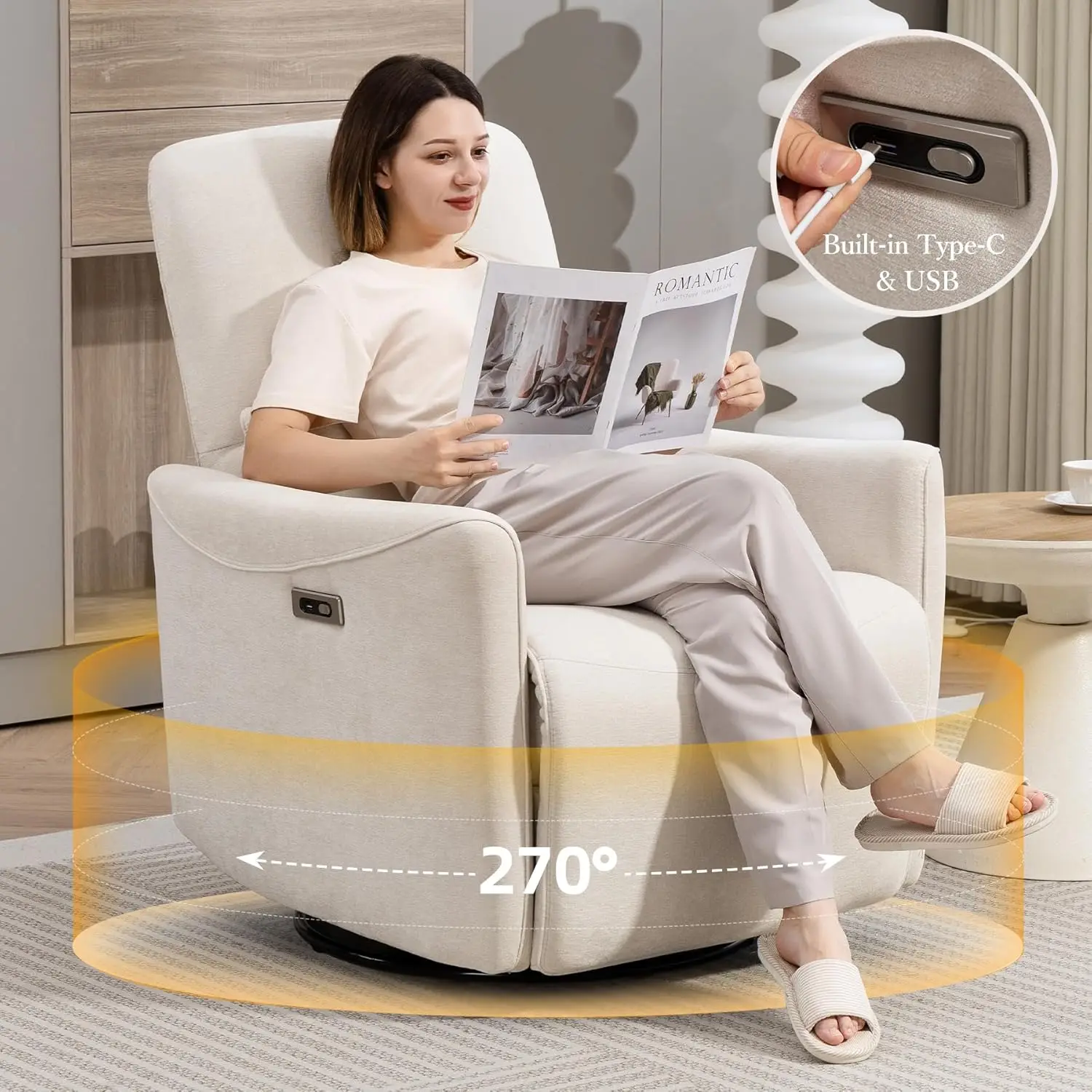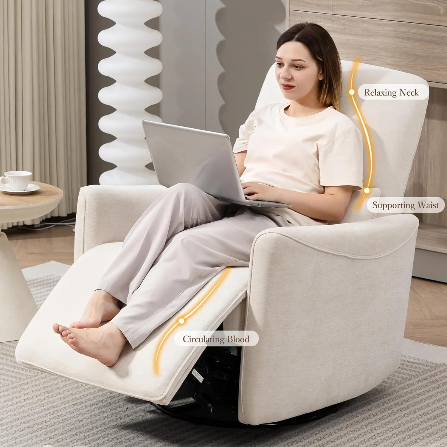 XIAOLANG Power Swivel Recliner Chair Upholstered Fabric Glider